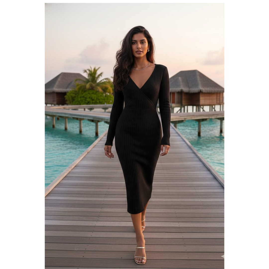 Overwater Oasis Ribbed Wrap Midi Dress-DZ20