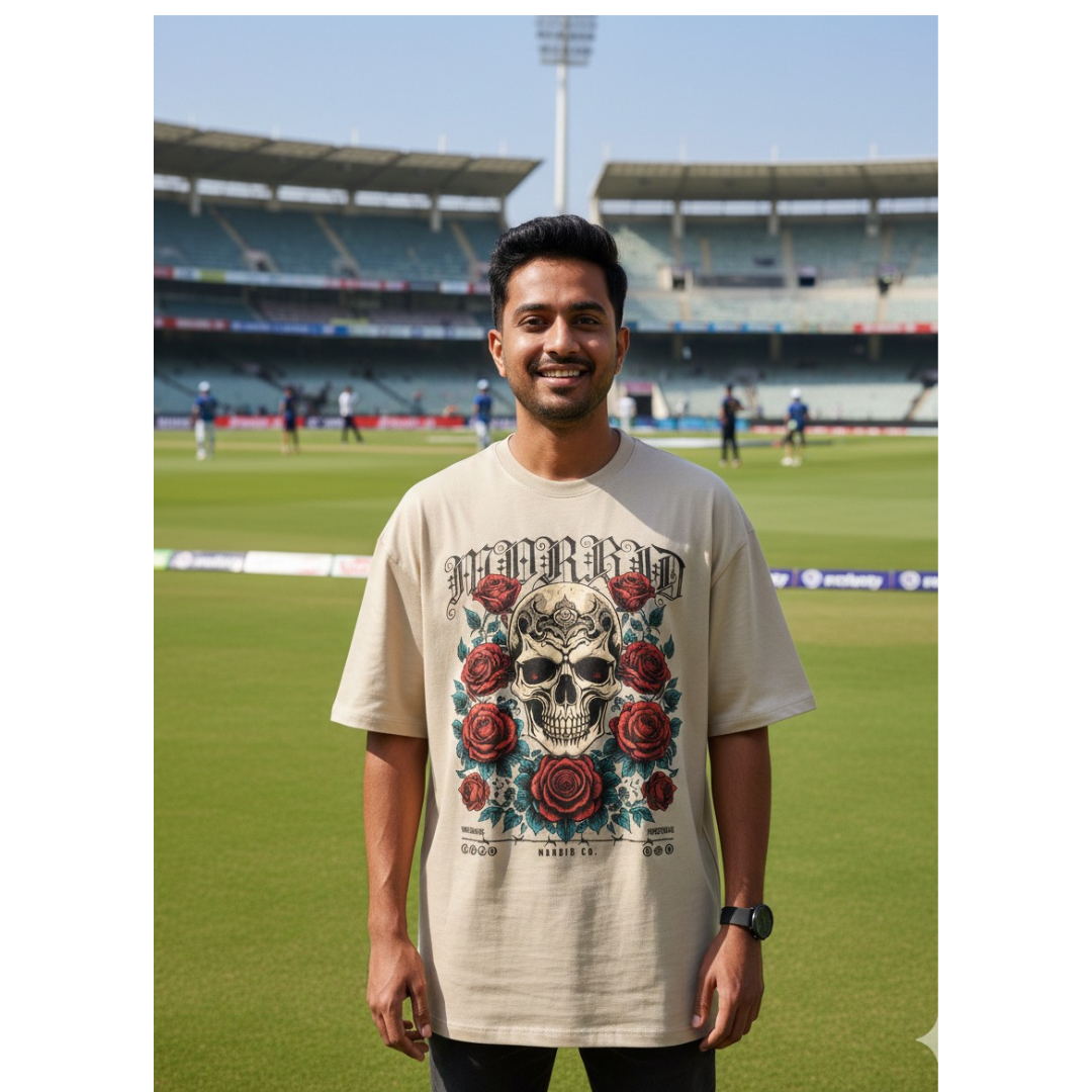 Make a bold statement with the Eternal Roses Skull Tee—a perfect fusion of gothic edge and timeless romance.  gold skull surrounded by deep red roses and dark green leaves, creating a powerful symbol of life, death, and beauty. Designed with vintage tattoo vibes and intricate detailing, this tee is crafted from premium fabric for a relaxed, ultra-comfortable fit. Ideal for those who embrace individuality and aren't afraid to stand out, it pairs effortlessly with jeans or joggers, offering a unique look for streetwear lovers, artists, and trendsetters. Let your style speak of strength and passion with this captivating masterpiece.